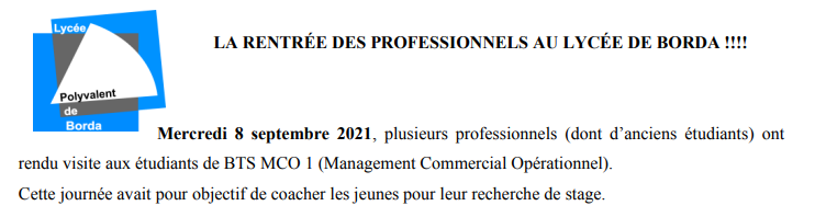 La rentrée en BTS à BORDA :