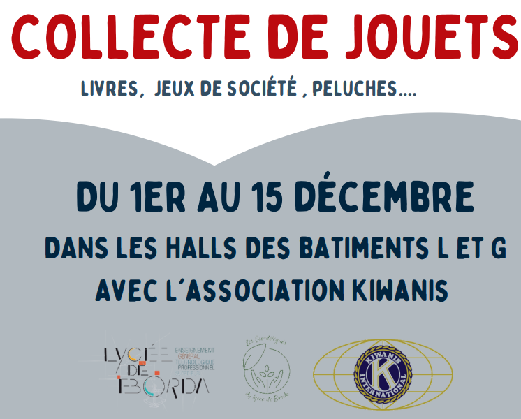 Collecte de jouets du 4 au 18 décembre 2023 avec l' association KIWANIS