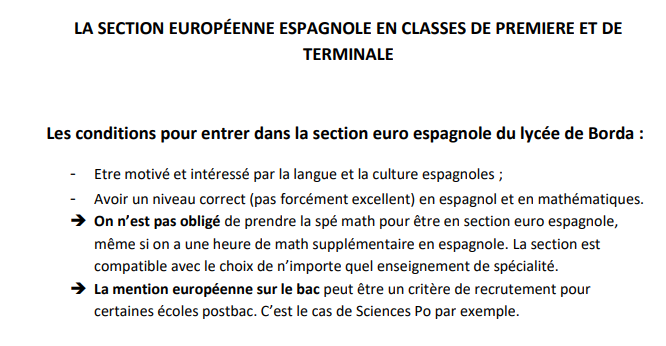 Le lycée de Borda propose une section européenne espagnole aux élèves entrant en classe de seconde.
